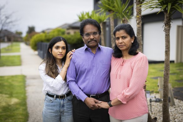 Prasannan Ponganamparambile with his wife Nisha and daughter Mejhna.Credit:Paul Jeffers