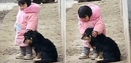 This is the heartwarming moment a two-year-old girl covered her dog’s ears when firecrackers were set off in southern China.