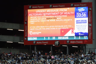 Footy fans who had travelled to Victoria from Brisbane were asked to leave Friday night’s match in Geelong between the Lions and the Cats to get tested.