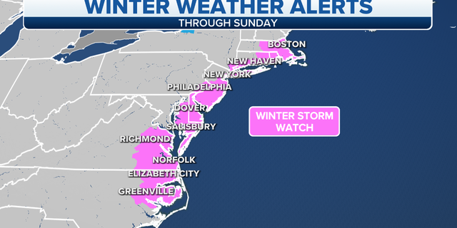 Winter weather advisories are posted from the coastal Carolinas up into New England.