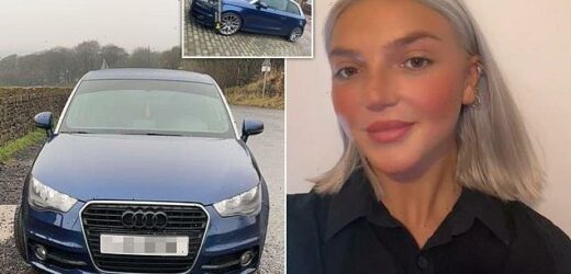 Chelsea Garner, 19, was left heartbroken after seeing the damage to her ‘beloved’ Audi A1 which was captured on a neighbour’s CCTV camera outside her home in Northern Moor, Manchester.