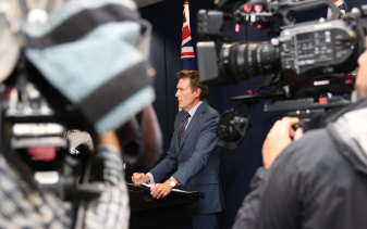Attorney-General Christian Porter’s Mach 3 press conference in Perth, where he strongly denied the allegations.Credit:Trevor Collens