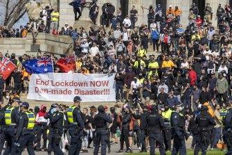Protesters gather at the Shrine of Remembrance on Wednesday.Credit:Wayne Taylor