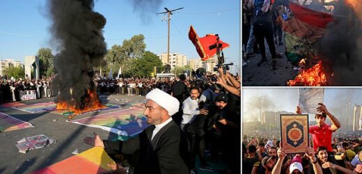 Sadr’s supporters also torched rainbow flags that represent the LGBTQ community, after the powerful cleric suggested this would be ‘the best way to provoke’ those who back Koran burnings.