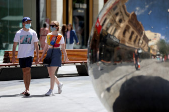 Shoppers wearing masks at Adelaide’s Rundle Mall. Credit:Getty