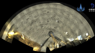 A image from a panoramic camera aboard the lander-ascender combination of Chang’e-5 spacecraft after it landed on the moon. Credit:AP