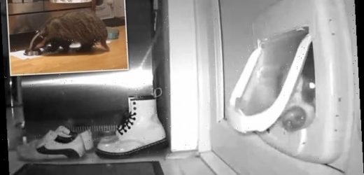 Brazen badger is caught on CCTV using catflap to steal food from couple’s home after wife wakes up to find the ‘smelly’ animal at her bedside