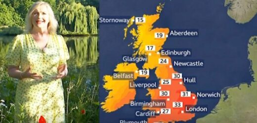“Across England and Wales widely, we’re into the mid to the high 20s, for the southeast we’re looking at 33C degrees, possibly a little bit more.