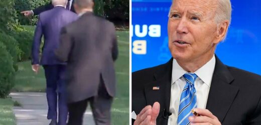 Video shows Biden following his agents up the lawn to the White House.