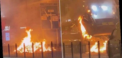 This is the dramatic moment a bin lorry was engulfed in flames on a busy London street.