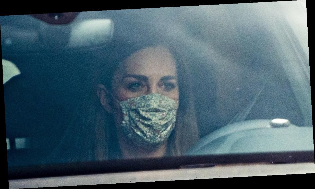 Flames can be seen engulfing the rear of the lorry as other road users carefully navigate their way around it.
