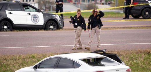 Traffic camera footage shared by KARE11 showed the suspect leaping out of the still-moving stolen car, then running into the road and seemingly pointing his gun at an approaching SUV before he was shot by “multiple” pursuing officers, police said.