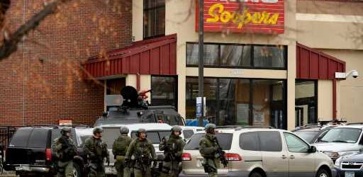 A timeline of the shooting compiled by The Denver Post shows that officers were inside the building four minutes after being dispatched to the scene. Seventeen minutes after the first dispatch, police used an armored vehicle to break the store’s windows and SWAT teams entered the building about 50 minutes after the first dispatch, quickly taking the suspect into custody.
