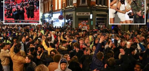 Impromptu street parties were seen in London’s Soho, with tens of thousands of revellers and even a dancing policeman roared on by crowds.