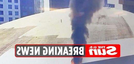 Footage showed a huge plume of black smoke billowing from what appeared to be the roof of the stadium.