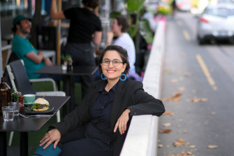 Yarra mayor Gabrielle de Vietri at the Archie’s cafe parklet on Gertrude Street in May this year.Credit:Eddie Jim