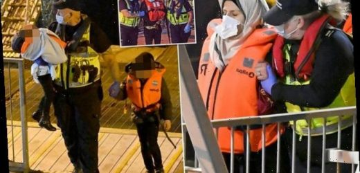 Dozens of migrants including a family with young children were seen arriving at Dover in the early hours this morning following the hottest day of the year so far.