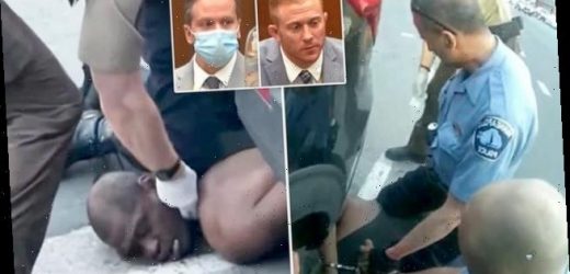 Paramedic Derek Smith (left), who checked George Floyd’s pulse before Derek Chauvin lifted his knee (right), testified at the former officer’s murder trial and said: ‘I thought he was dead’