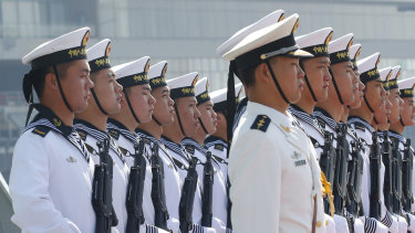 Chinese People’s Liberation Navy sailors stand in formation.Credit:AP