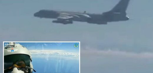Footage released on Twitter saw the PLA military aircraft training across the Taiwan Straits amid reports Beijing may be preparing for a 48-hour blitz to capture Taiwan in a flash.