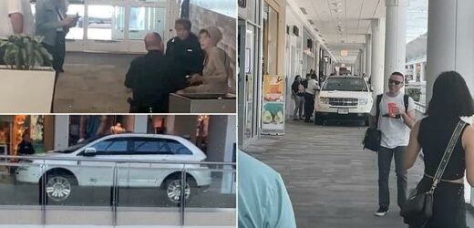 Shoppers could be seen gaping in disbelief at the sight, while a mall security agent leaned in the driver’s side window to speak with the lost driver.