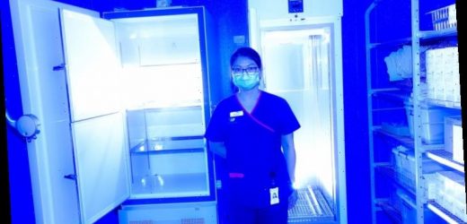Pharmacist Lei Ching Yeoh in the vaccination hub at Sunshine Hospital in the Melbourne suburb of St Albans. Ultra-low temperature freezers there will store thousands of doses of the Pfizer vaccine as soon as it lands in Australia.Credit:Justin McManus
