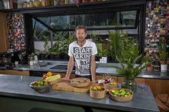 The project’s producer, Joost Bakker, in the kitchen, which has tiles made from skateboards.Credit:Wayne Taylor