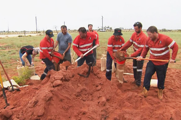 Volunteers in Port Hedland help get the town ready.Credit: Nine News Perth