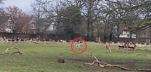 Royal Parks Police were called to the scene by worried members of the public who saw the canine chasing a large number of red and fallow deer
