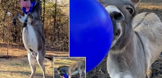 Ecstatic Arkansas donkey is over the moon with his new ‘jolly ball’ Christmas toy