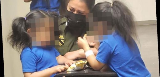 SWEET photos show two little girls who were dropped over the US-Mexico border wall by smugglers having a snack with a border agent.