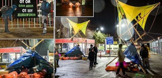 Eco-mob block oil depot for FOURTH day in row: Extinction Rebellion set up bamboo barricades outside Esso site near Heathrow… while drivers face sky-high petrol prices