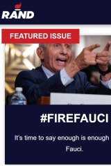 Detail from US Republican Senator Rand Paul’s fundraising website that features director of the National Institute of Allergy and Infectious Diseases Dr Anthony Fauci.