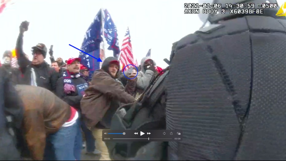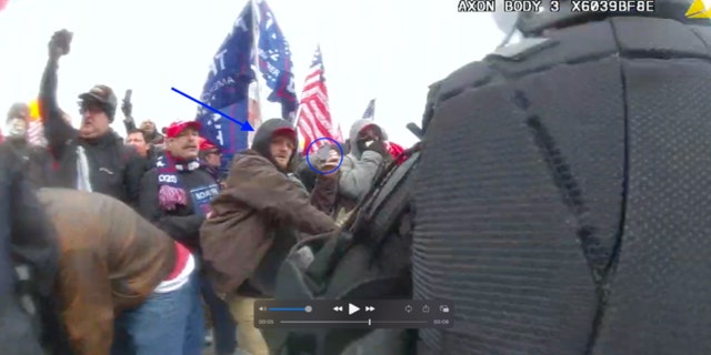 In police bodycam video, he allegedly “approaches the front of the crowd of rioters, confronts the line of police officers attempting to hold the crowd back, and physically engages with one of the officers,” according to the affidavit.