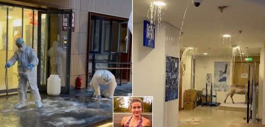 Katri Lylynpera, 28, shared videos of her room where the Finland athletes were staying being flooded last Wednesday. In the first clip, Ms Lylynpera showed the streaming water coming out the ceiling in the corridors of the hotel