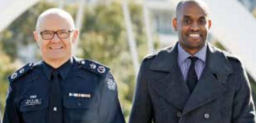 Mohamed Saleh (right) in 2014 with the then Chief Commissioner of Police, Ken Lay.