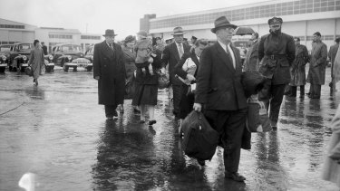 It was a miserable-looking scene as the 52 men, women and children walked across the tarmac with rain blowing in their faces, unsmiling, carrying hand luggage, and some without overcoats.