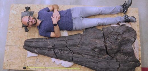 The prehistoric dinosaur, named Cymbospondylus youngorum, was found with its long snout and pointed teeth in Nevada’s Black Rock desert.