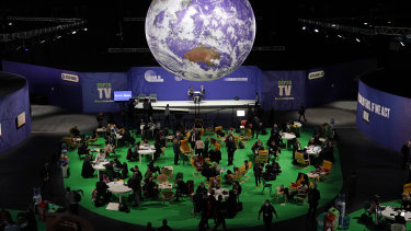 Delegates gather inside the venue on another day at the COP26 UN Climate Summit in Glasgow, Scotland. Credit:AP