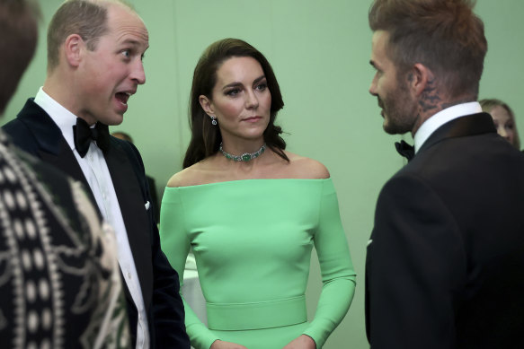 The Prince and Princess of Wales chat with David Beckham at the Earthshot Prize.Credit:AP