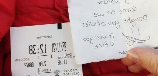 ‘He kind of didn’t need a parking fine so we’re very grateful to the very kind person who did this.’