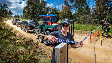 Police seal off McMillans Road near Dargo during their search for remains in November 2021.Credit:Jason South
