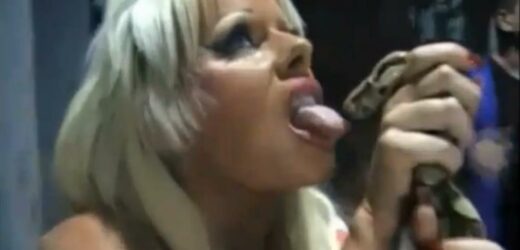 THIS is the horrifying moment a massive snake bit a model's fake breast after she licked it during a photoshoot.