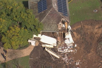 NSW SES said crews attended the scene at Richmond Lowlands on Monday afternoon following reports of a major landslip. The house on Edwards Road was unoccupied at the time and no injuries were reported.