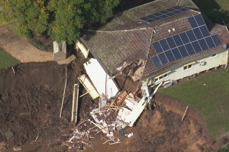 A house has been destroyed by a landslip on the Hawkesbury River.Credit:Nine News