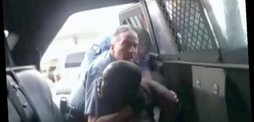 The footage shows Chauvin and Officer Thomas Lane struggling with Floyd to get him inside the police car, and Chauvin's camera falling to the ground during the fracas.