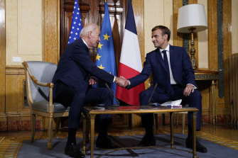 US President Joe Biden and French President Emmanuel Macron in Rome.Credit:AP