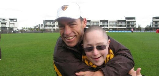 I’ve met Clarkson once, briefly, in May 2011, when a children’s charity arranged for me and my three sons to visit a Hawthorn training session. We got to meet men who became Hawthorn immortals: Buddy Franklin, Sam Mitchell, Jarryd Roughead and Brad Sewell among others. At the end I took a quick snap of Clarkson embracing my youngest son, Sam.