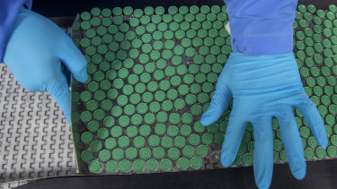 An employee packs a box containing vials of Covishield, a version of the AstraZeneca vaccine, at the Serum Institute of India in Pune.Credit:AP