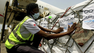 A shipment of COVID-19 vaccines distributed by the COVAX Facility arrives in Abidjan, Ivory Coast. Credit:AP